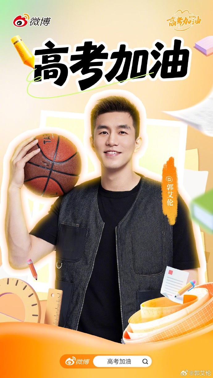 “三代辽宁篮球人,嘻嘻😜。祝大家高考取得好成绩✌🏻。”郭艾伦在图片旁边写道。